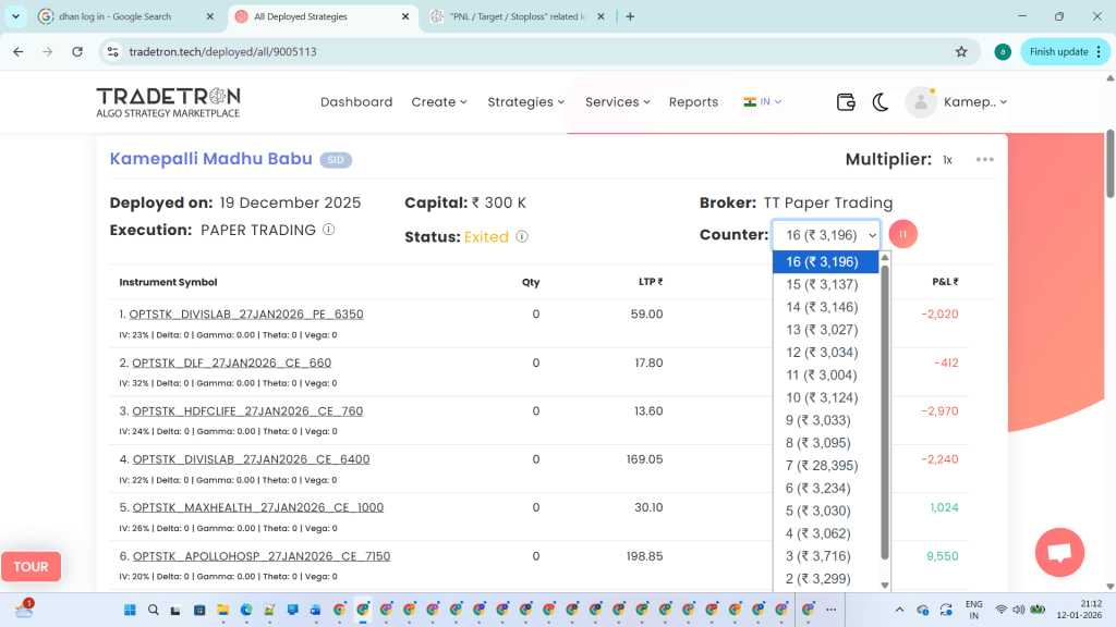 strategy link – https://tradetron.tech/strategy/8960069