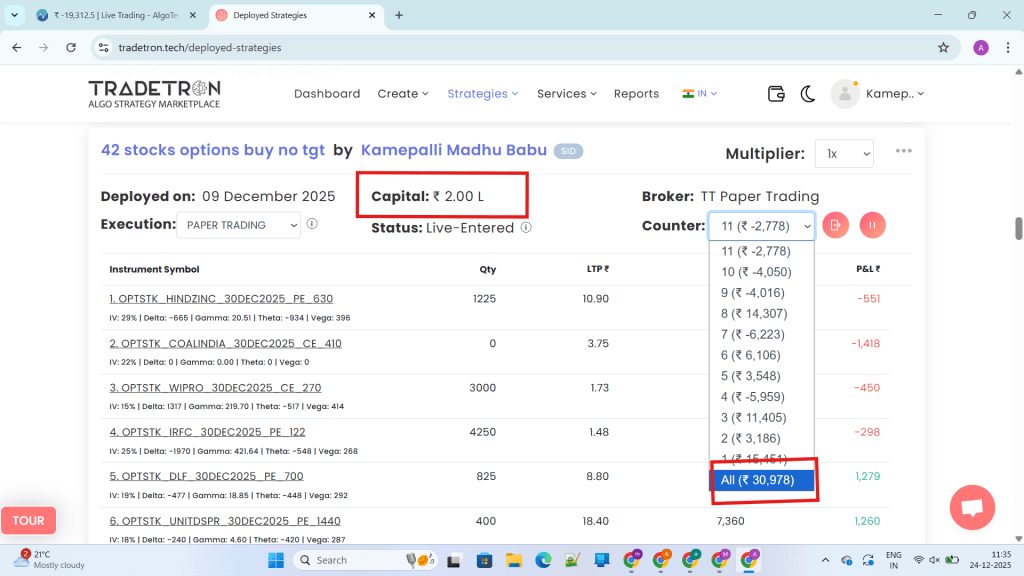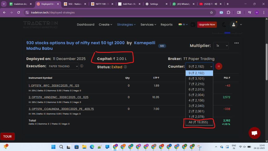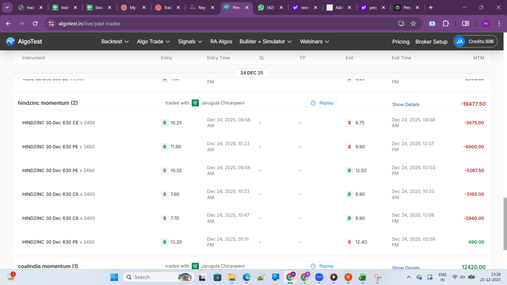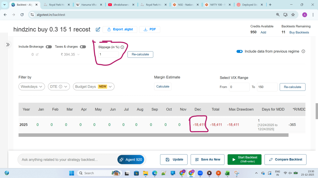 On 24 December 2025, a simple Hindustan Zinc (HINDZINC) options strategy exposed a harsh reality of algo trading: the backtest said one thing, but the live P&L told a completely different story. Even after applying a seemingly conservative 1% slippage in the backtest, there was still almost ₹1,000 difference between the “expected” and “actual” results, raising a crucial question: how realistic are our backtests, really?
